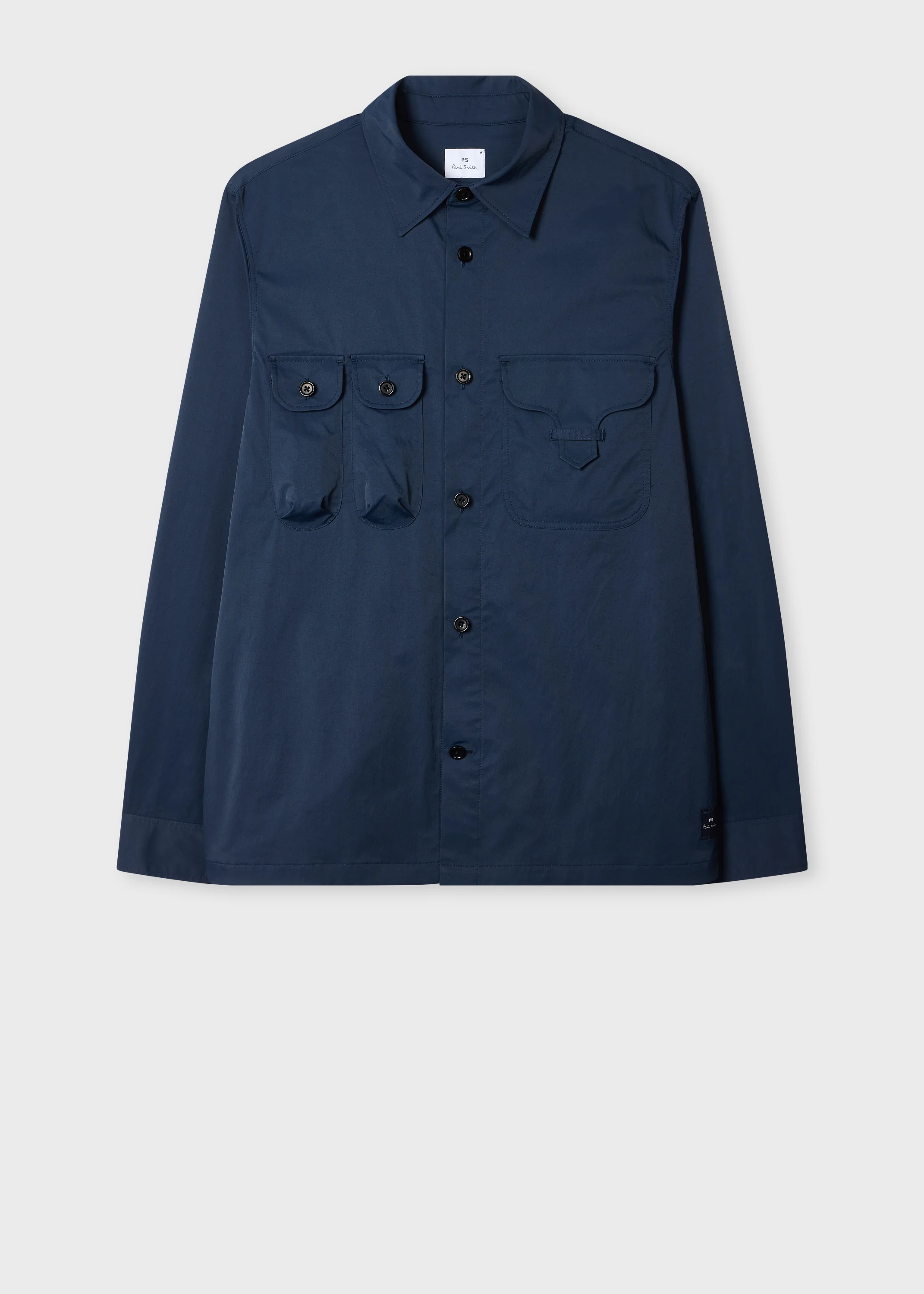 Navy Cotton-Blend Patch-Pocket Overshirt