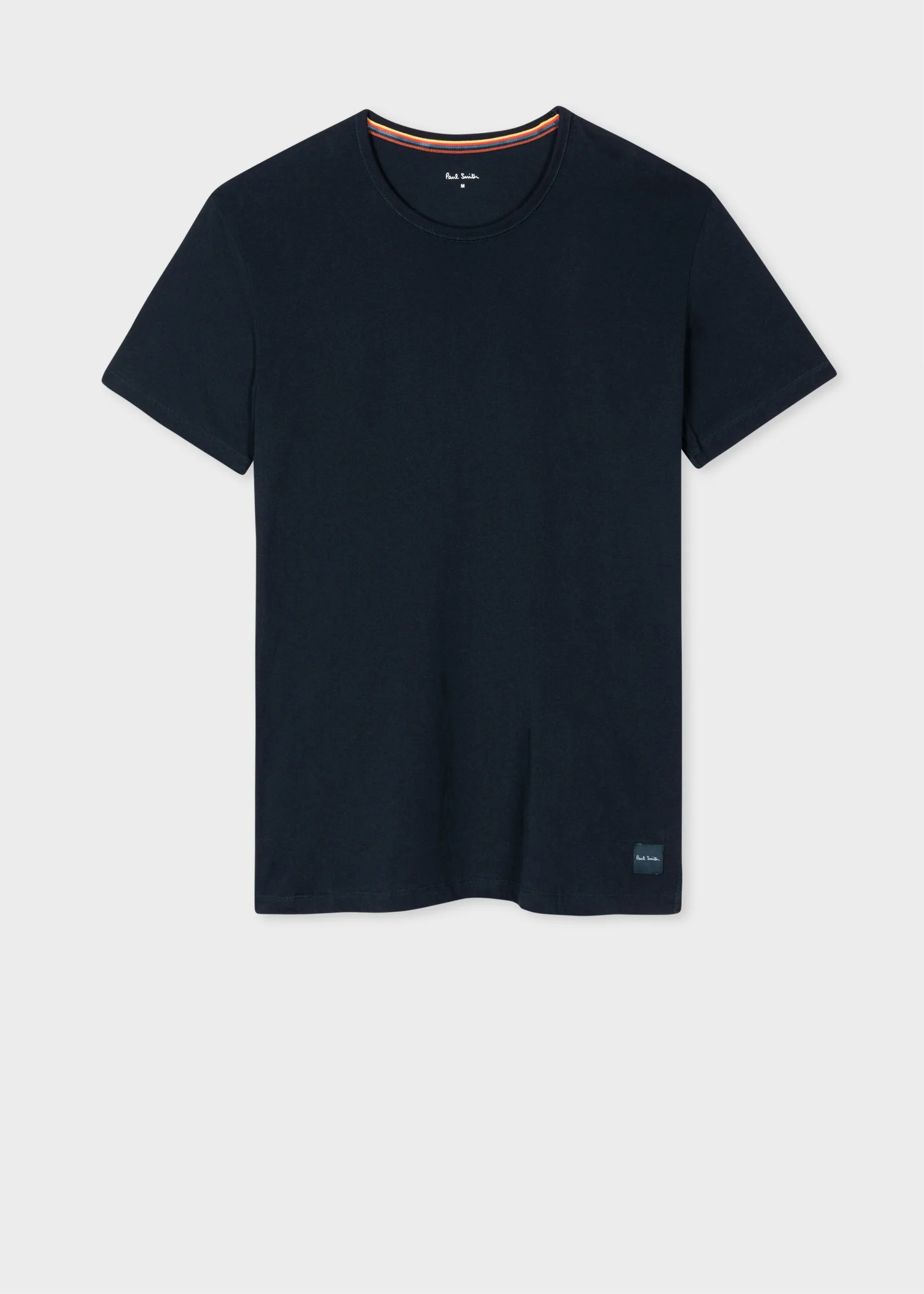 Constructed from a soft 100% jersey cotton, this navy crew neck T-shirt features a striped internal neckband and Paul Smith signature patch at the hem. Designed for a comfortable fit, this loungewear essential will seamlessly elevate your everyday wardrobe. 100% Cotton Machine washable The Size Model wears a size M Model measures: Height 6’2’’ / 188cm | Chest 37’’ / 93.5cm | Waist 30”/ 76.5cm The Fit Regular-Fit is relaxed through the body. Product Code: M1A-591K-AU278B-48