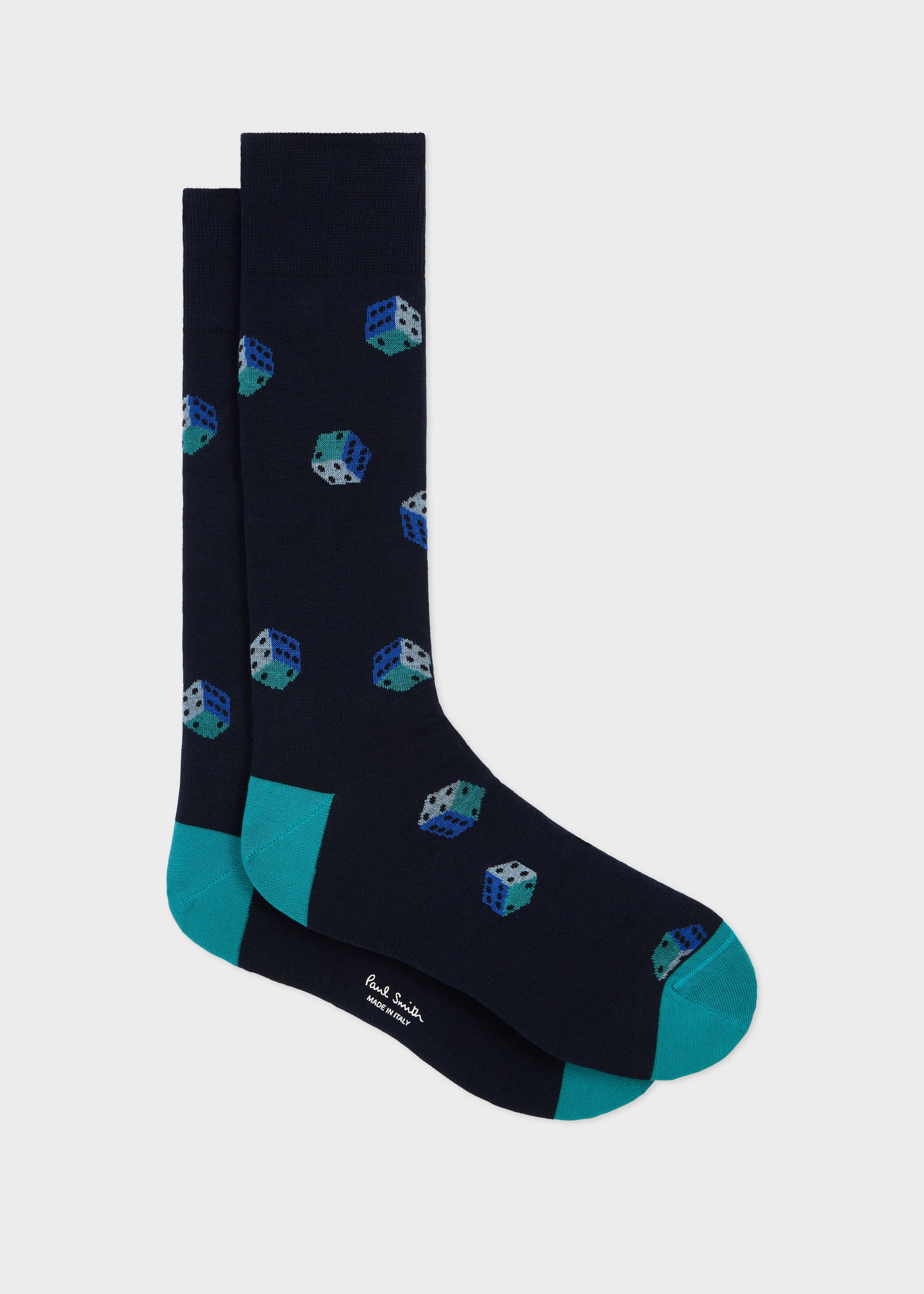 Made in Italy from a soft cotton-blend, these navy socks feature a 'Dice' pattern throughout. Perfect for adding some colour and pattern to any outfit. Product Code: M1A-800MO-U847-47