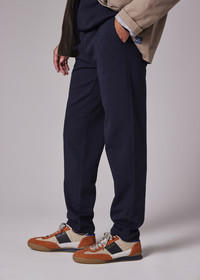Made from a double face interlock cotton-blend for a more structured, stable finish - these navy sweatpants feature an elasticated waist with internal drawstring for a comfortable fit. Tapered through the leg, these sweatpants are finished with a 'Sports Stripe' rear pocket for a subtle flash of colour. 81% Cotton, 14% Polyester, 5% Elastane Machine washable The Fit Tapered-Fit Product Code: M2R-013Z-T22128-47