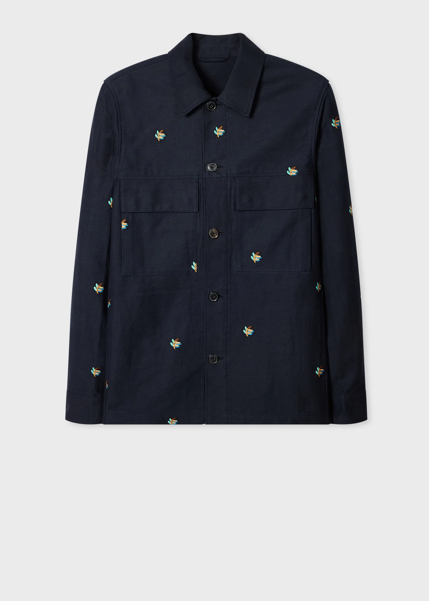 Made from 100% cotton-twill, this navy overshirt features embroidered floral detailing all-over. Cut for a relaxed-fit with a straight hem, this overshirt is finished with chest patch pockets and side-seam pockets for practicality. Product Code: M1R-703Y-T02758-49