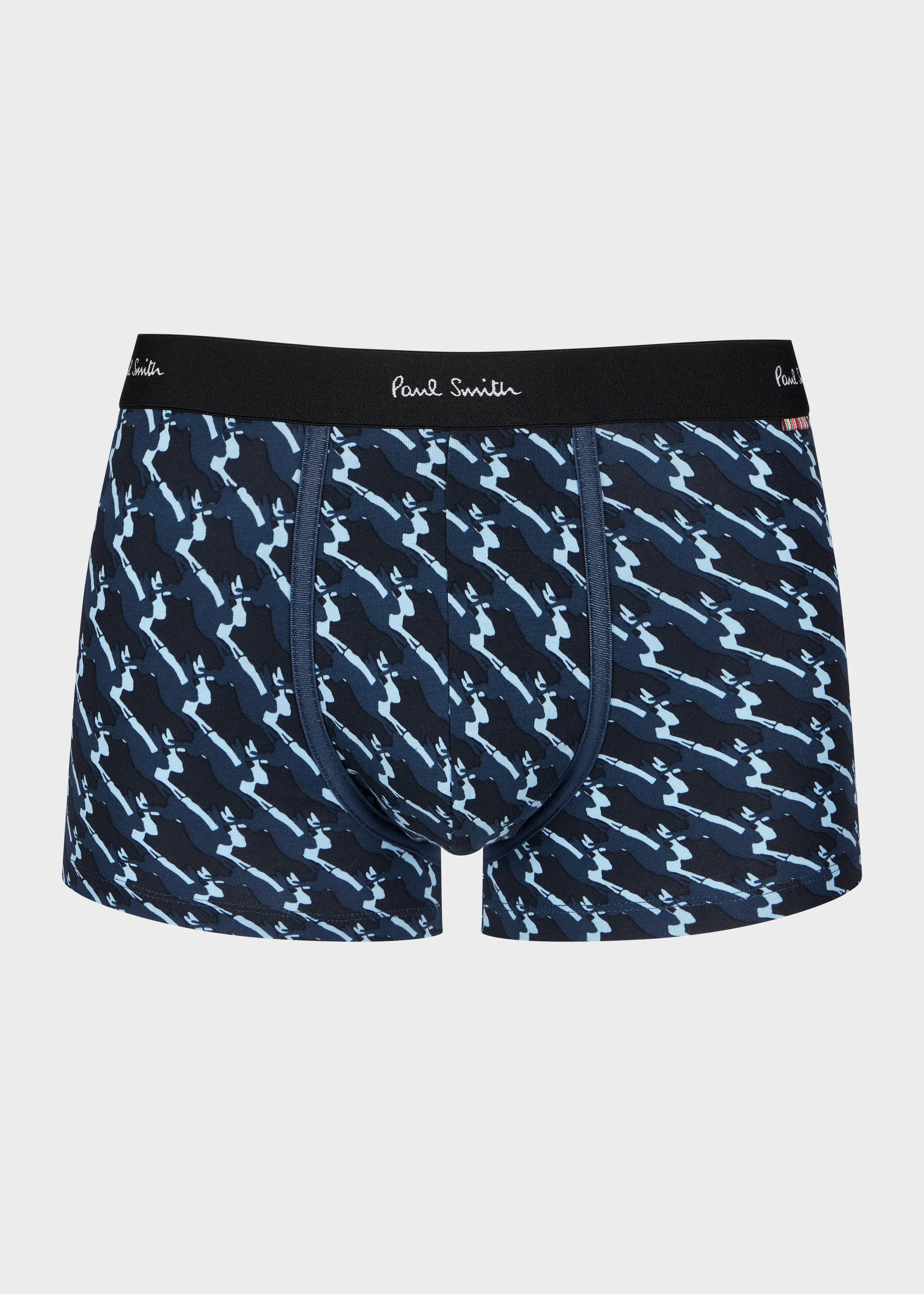 Made from soft organic cotton with stretch for comfort, these navy boxer briefs feature a seasonal 'Jumping Rabbits' print. Finished with a signature logo waistband and 'Signature Stripe' tab. Product Code: M1A-459B-U898-47