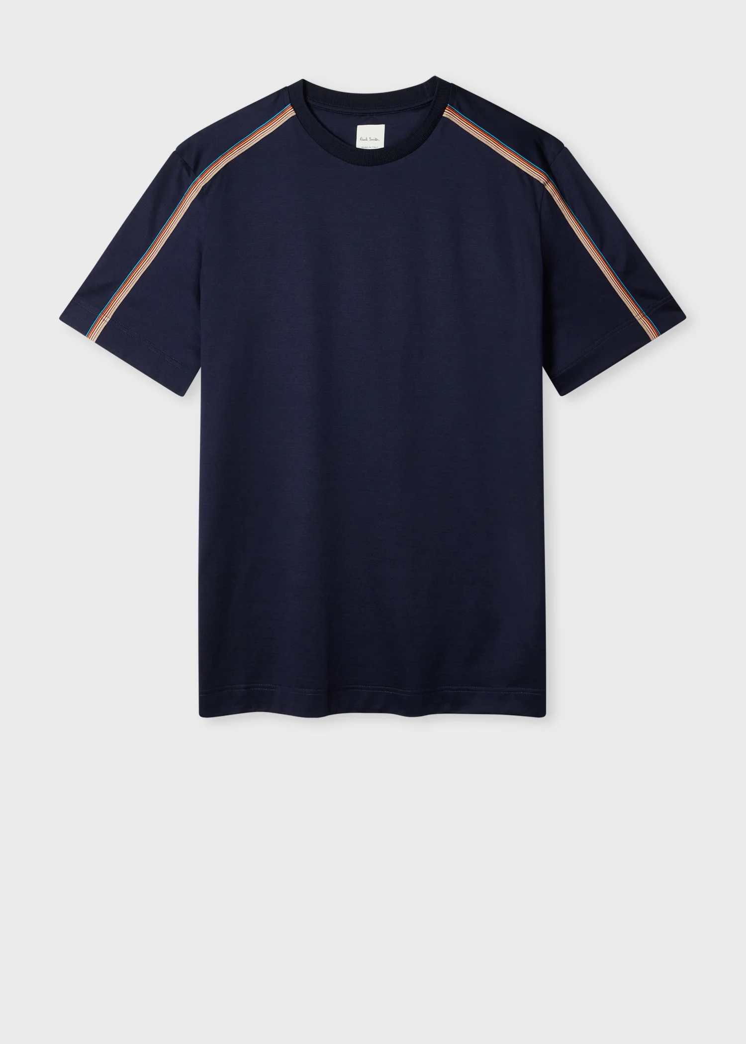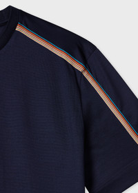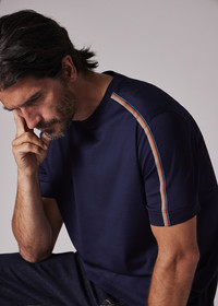 Navy Mercerised Cotton 'Signature Stripe' Shoulder Trim T-Shirt