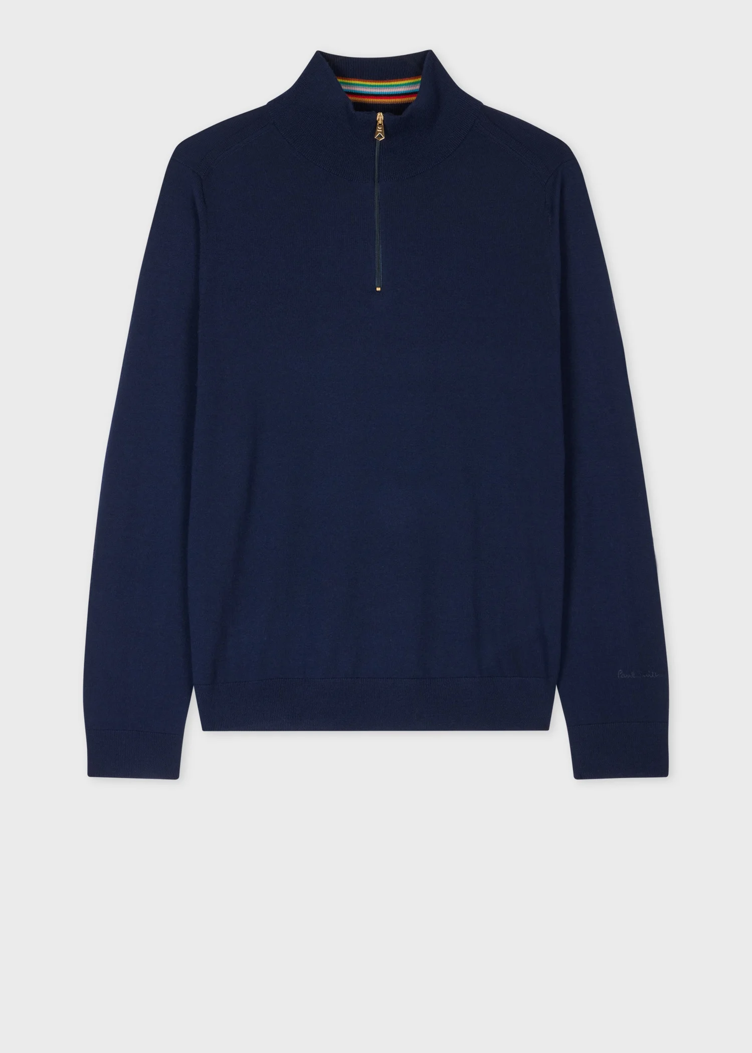 Made from 100% Merino wool for a lightweight and breathable finish, this navy sweater features a half-zip funnel neck design. Complete with internal 'Signature Stripe' trim, this sweater is finished with a tonal signature logo embroidered on the cuff. 100% Merino Wool Hand wash The Fit Regular-Fit Product Code: M1R-239Z-P02093-49