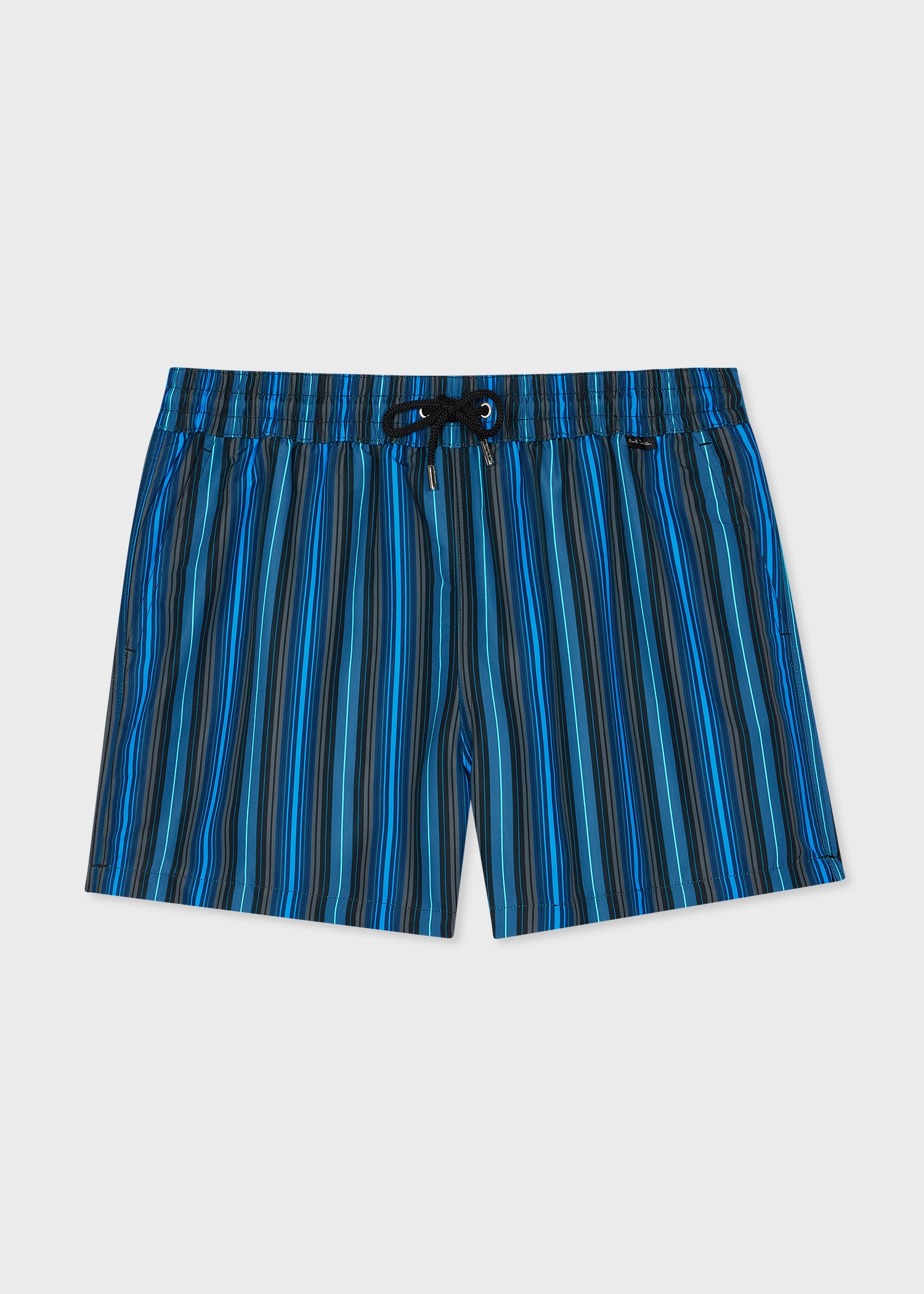 Made from 100% recycled polyester, these navy swim shorts feature a tonal multi-stripe pattern throughout. Finished with a mesh lining, drawstring waist and rear zip pocket. 100% Recycled Polyester Machine washable The Fit Regular-Fit Product Code: M1A-239B-P41605-46