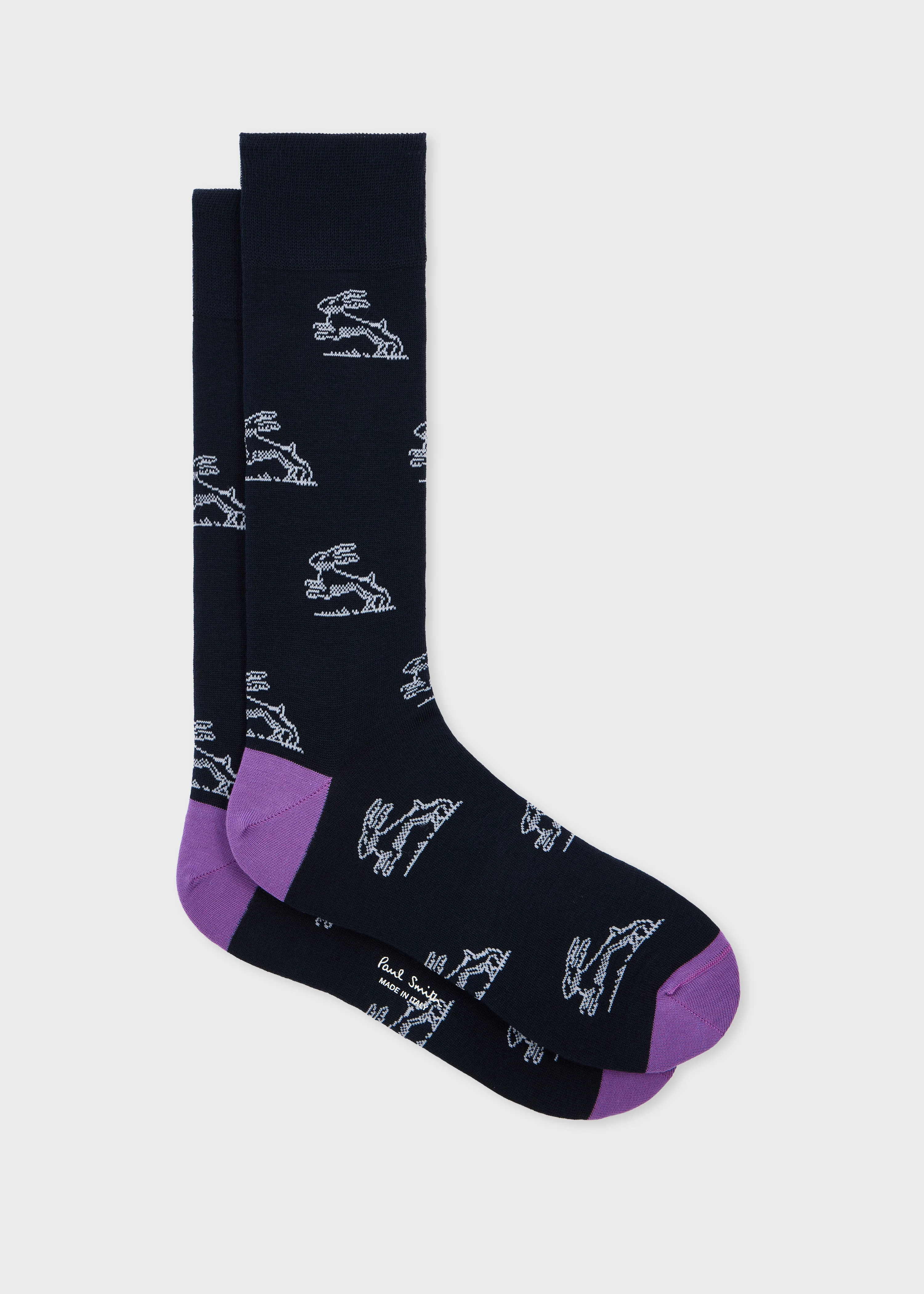 Made in Italy from a soft cotton blend, these blue socks are decorated with the playful 'Rabbit' motif. Product Code: M1A-800MO-T688-47