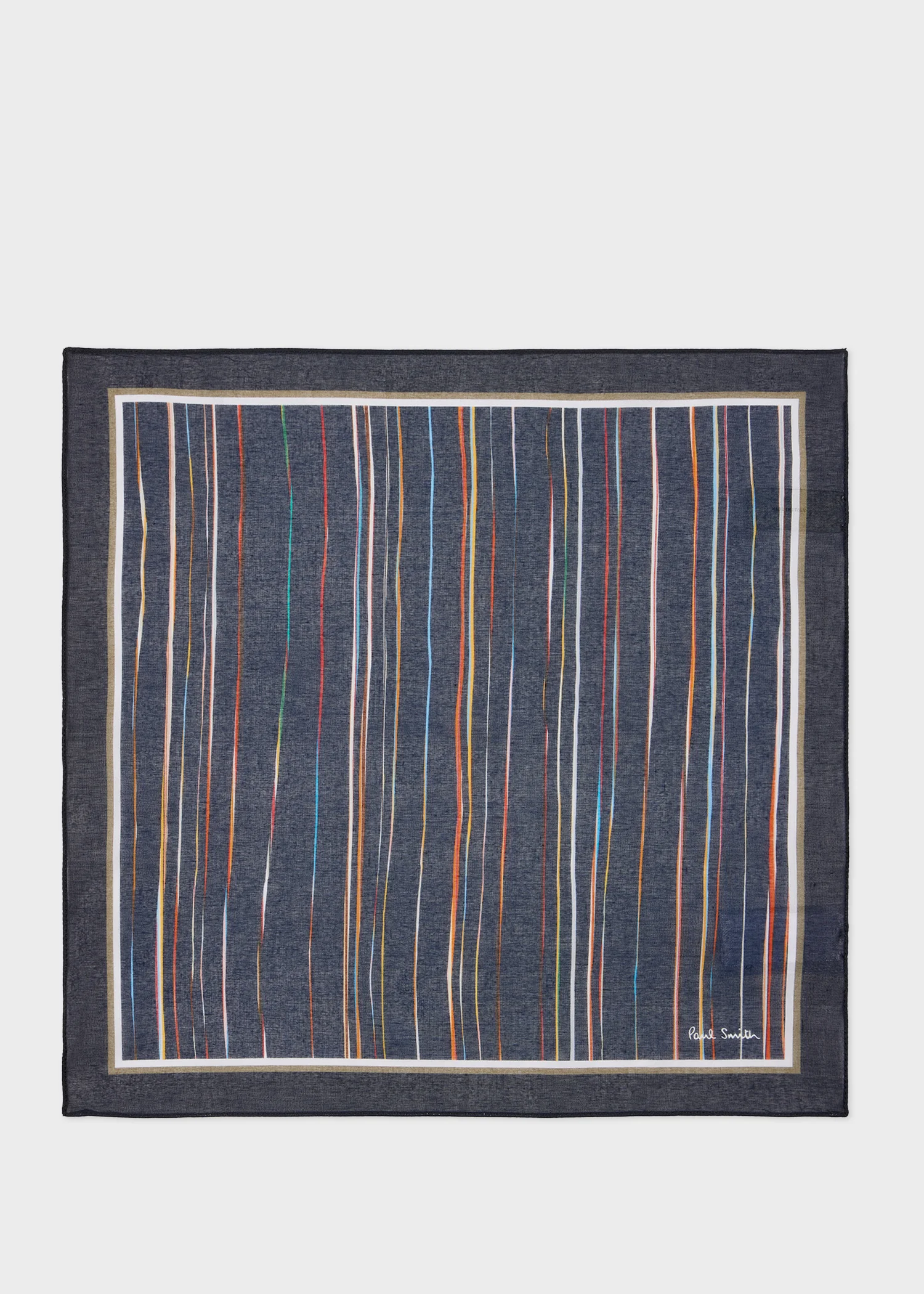 Navy 'Signature Pinstripe' Cotton Pocket Square