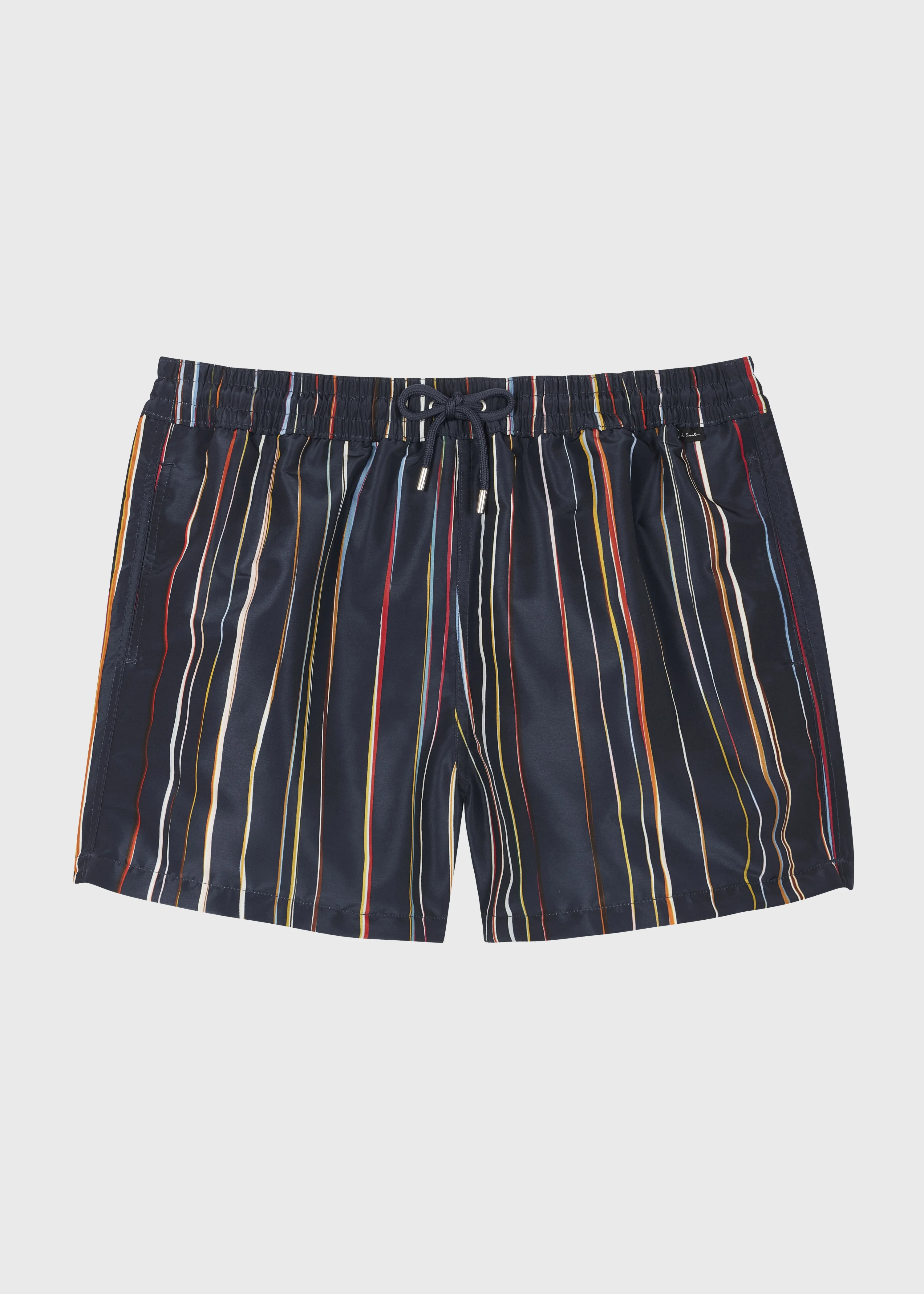 Made from recycled polyester, these navy swim shorts feature our distinctive 'Signature Pinstripe' design. Cut to a classic fit for comfort in and out of the water, they offer the perfect blend of style and functionality for your holiday wardrobe. The Fit - Classic-Fit Product Code: M1A-239B-T41629-47