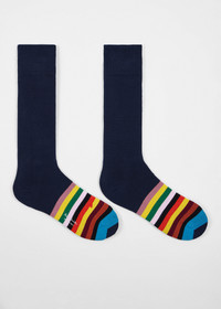 Made in Italy from a soft cotton-blend, these navy socks feature our classic 'Signature Stripe' tipping for an added pop of colour. Product Code: M1A-380CI-P440-47