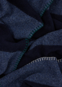 Made in Italy from 100% soft sheep wool, this scarf features a navy and blue stripe pattern throughout, with a contrasting blanket stitch trim. Ideal for everyday styling, this neutral scarf pairs well with cool-toned outfits, for a sleek, transitional look. The Fit 35 x 180cm Product Code: M1A-150T-U865-47