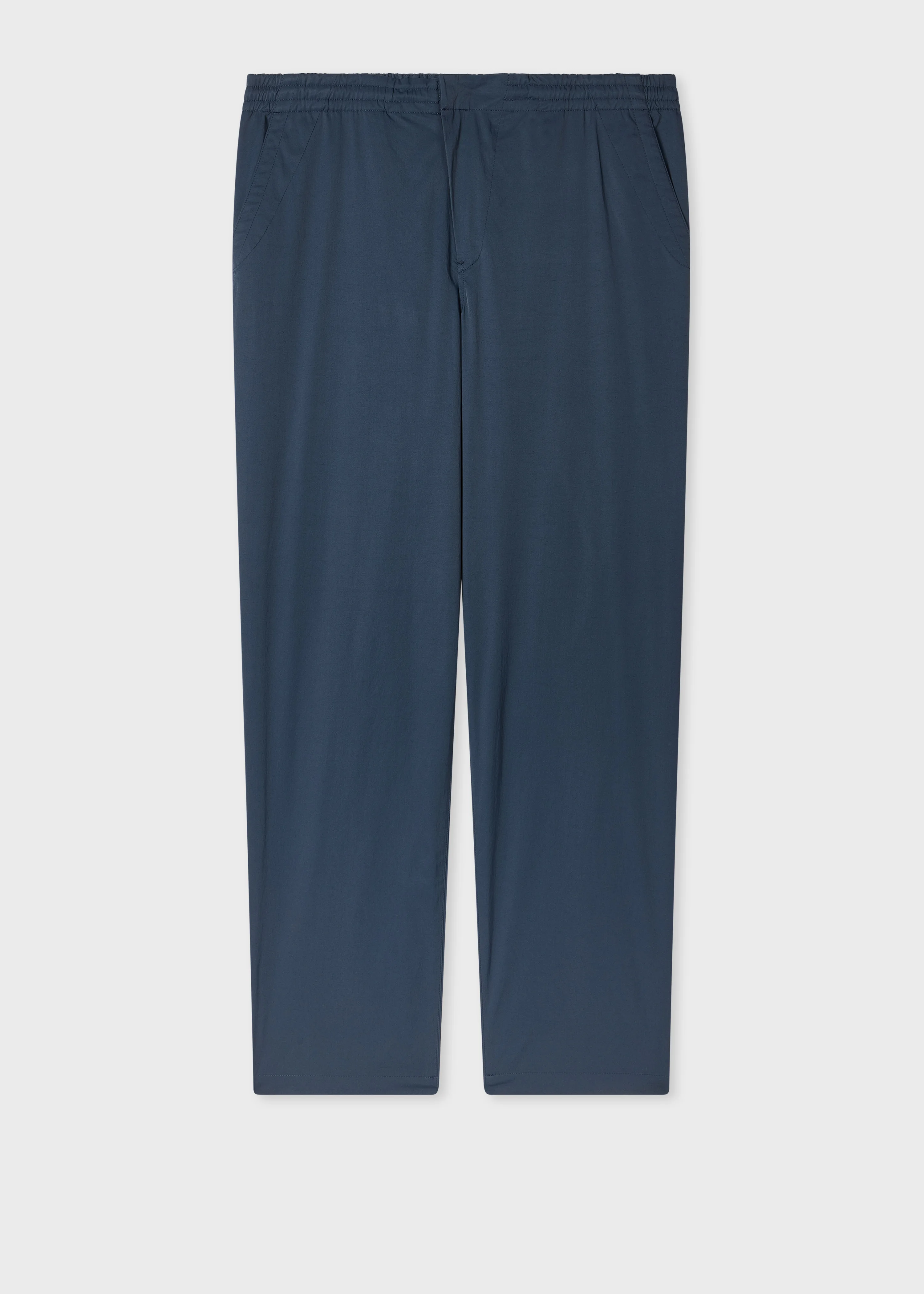 Made from a polyamide and cotton-blend for a lightweight technical finish, these navy trousers feature an elasticated waist with an internal drawstring for comfort. Cut for a tapered-fit, these casual trousers are finished with angled front pockets and a single rear patch pocket. The Fit - Tapered-Fit Product Code: M2R-672Z-V22539-49