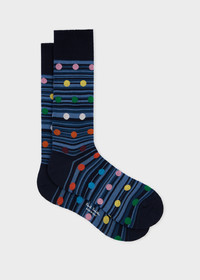 Navy Tonal Stripe and Multicolour Polka Dot Socks