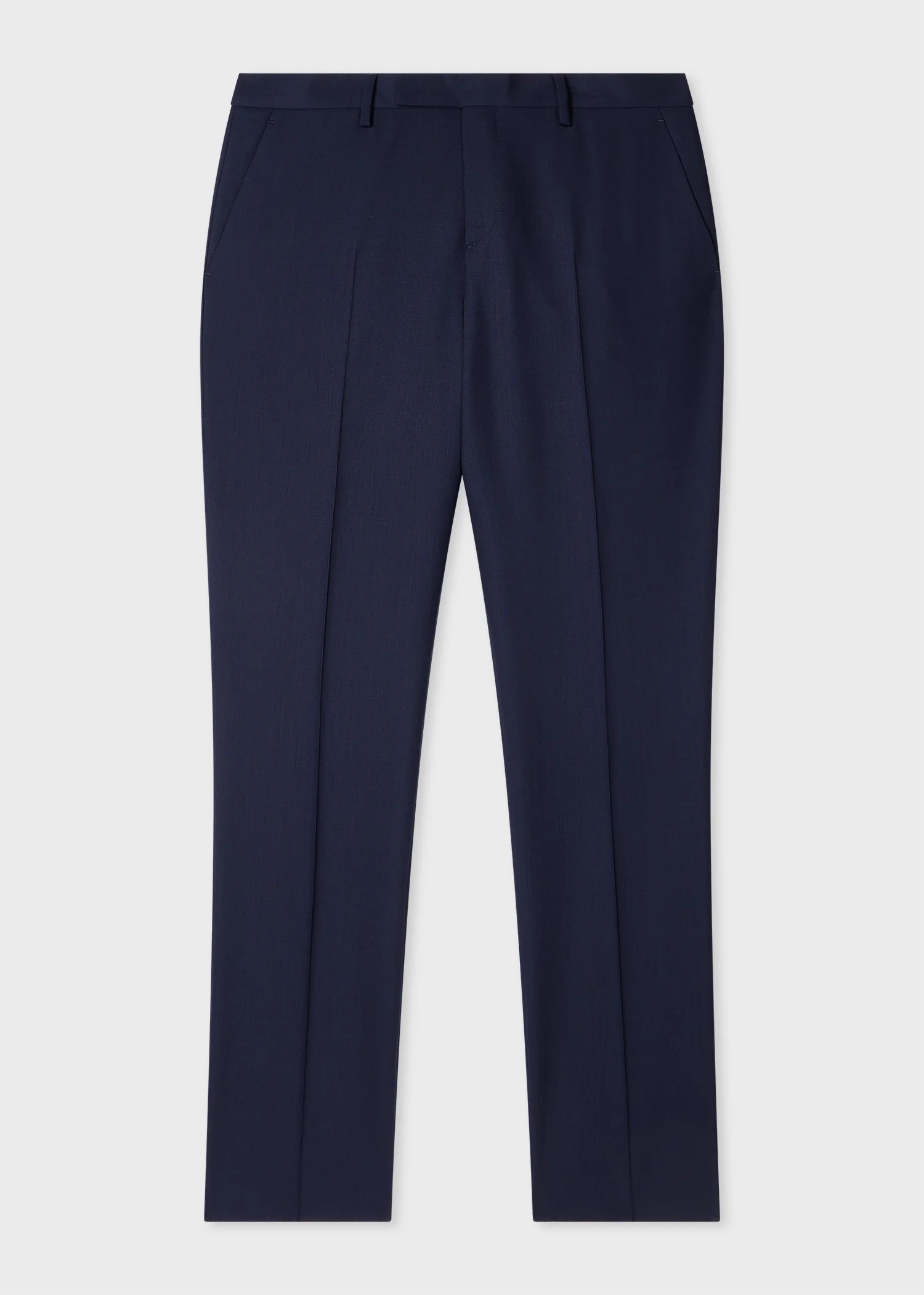 Made in Italy from the 100% wool 'Travel Pro' fabric from Loro Piana, these navy trousers are cut for a slim tapered-fit. Pair with the matching blazer for a travel-ready tailored look. The Fit - Tapered-Fit - Classic tailored waistband with extension - Low rise - Tapered through knee and calf - Narrow hem Product Code: M1R-925N-R01026-48