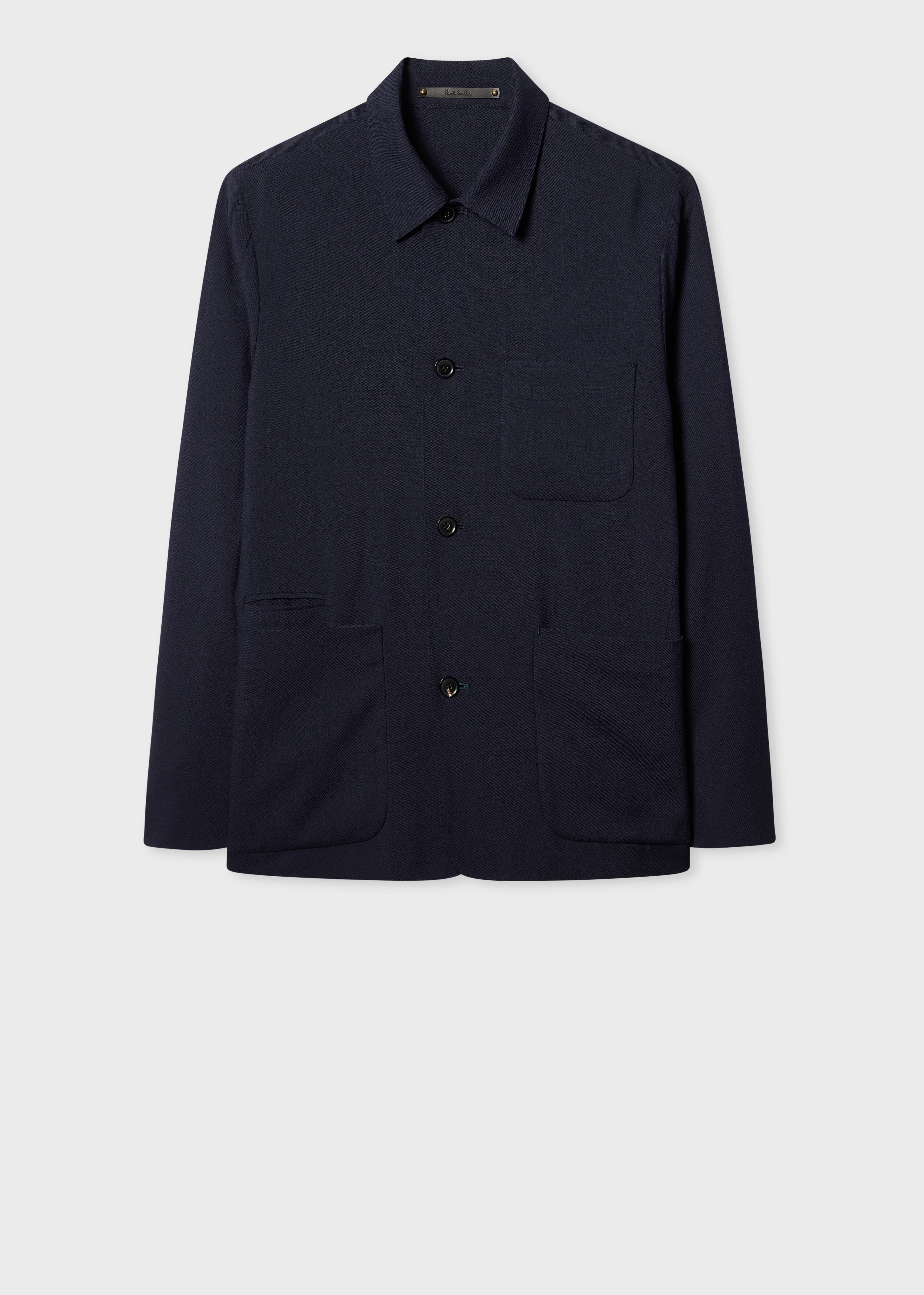 Made from a two-ply Merino wool hopsack cloth for a heavier finish, this navy jacket features classic workwear-inspired styling with three bluff-stitched patch pockets. Complete with a full lining for added comfort, this versatile jacket is finished with a subtle ticket pocket detail. The Fit - Regular-Fit - Relaxed through the body - Classic workwear-inspired silhouette Product Code: M1R-017X-V01746-49