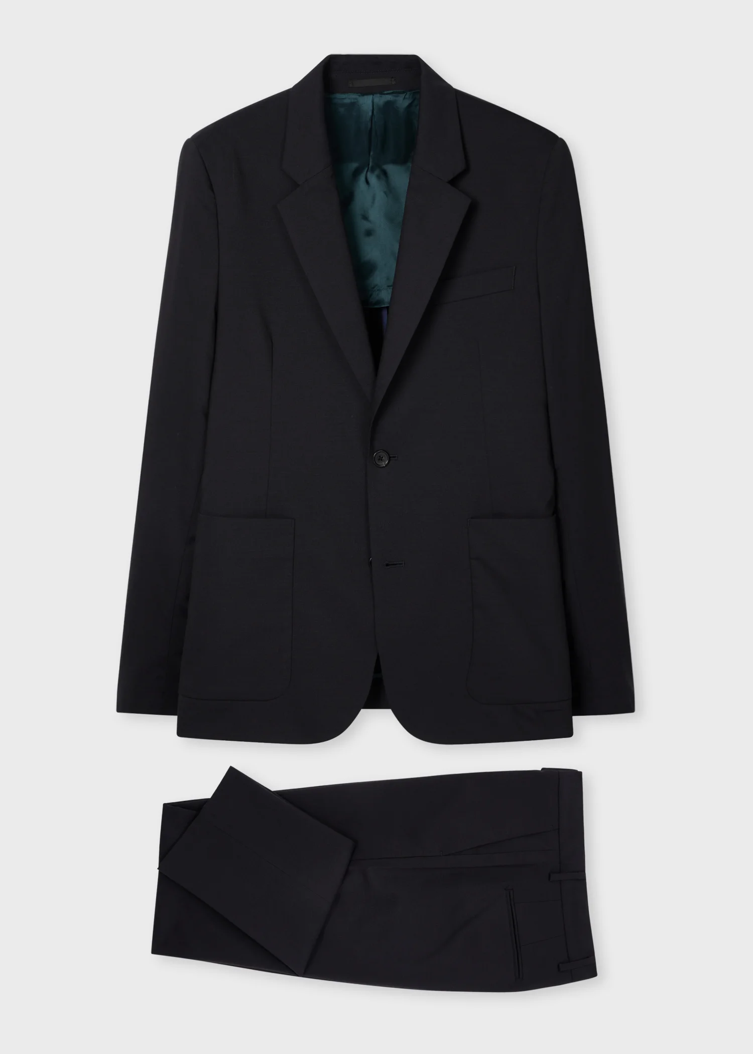 Made from a wool and cotton-blend cloth with a dry handle finish, this navy suit is ideal for smart casual wear. The blazer features a breathable lining for added comfort. Complete with a two-button fastening, patch pockets, and a notched lapel. The mid-fit navy trousers feature a classic chino design. Product Code: M2R-SUIT-T22423-49
