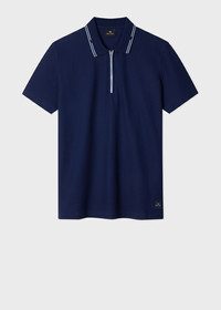 Navy Zip-Neck Pique Polo Shirt