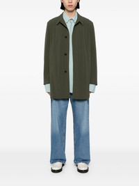 packable mac trench coat Highlights - Military green - Recycled nylon blend - Front button fastening - Classic collar - Long sleeves - Two front welt pockets - Central rear vent - Straight hem - Above-knee length - Full lining - Internal pocket Imported Composition Recycled Nylon 85%, Elastane 15% SIZE & FIT Model measurements Height 6 ft 2 in(1.87 m) Bust/Chest 33.07 in(84 cm) Hips 35.43 in(90 cm) Waist 26.77 in(68 cm) FittingInformation Designed to be unstructured, offering a loose fit throughout Made from a midweight stretch fabric, this piece offers elasticity and flexibility when worn