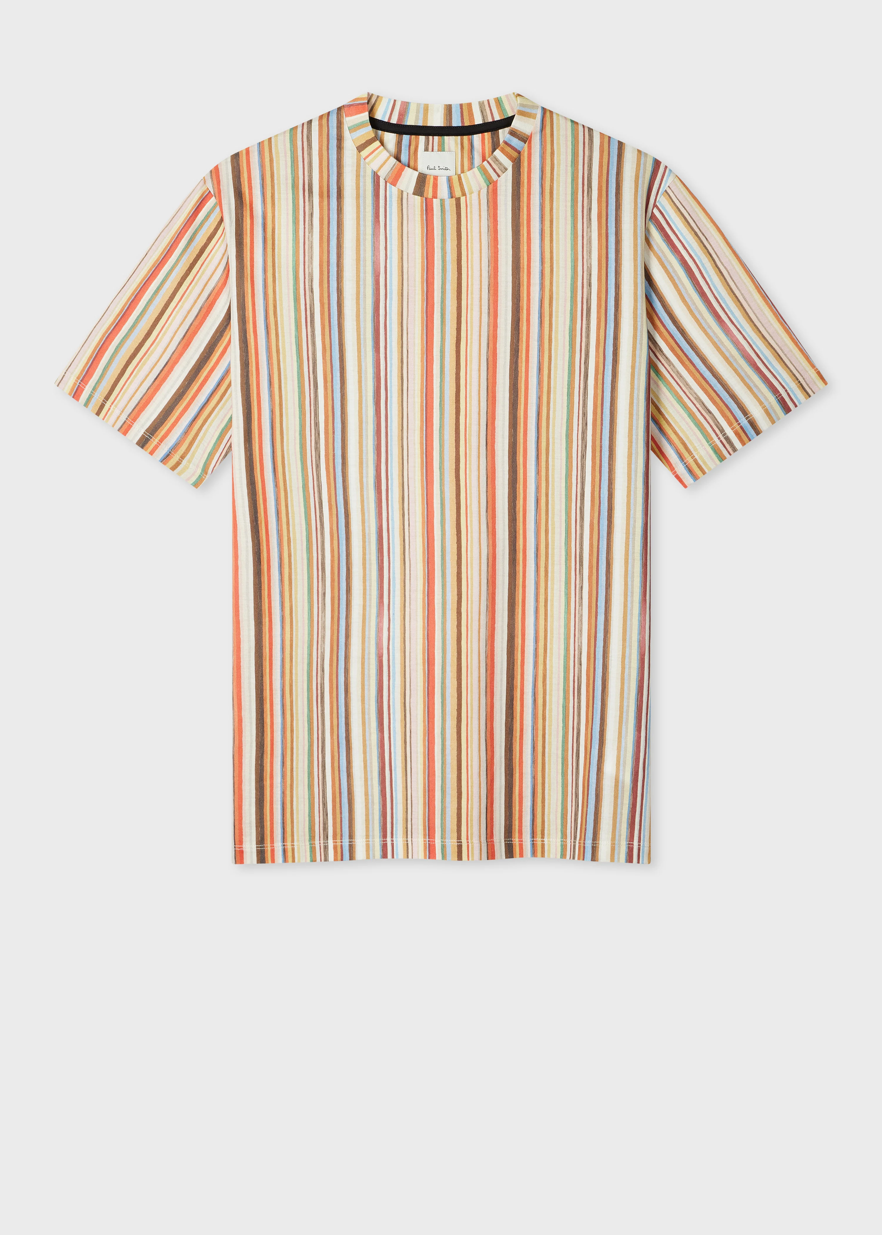 Made in Portugal from 100% cotton jersey, this crew neck T-shirt features a 'Painted Signature Stripe' print throughout. Cut for a regular-fit, this statement T-shirt is finished with a tonal ribbed collar. The Fit - Regular-Fit Product Code: M1R-919T-VP5465-92