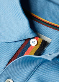 Made in Portugal from soft cotton, this classic pale blue polo shirt features a concealed 'Artist Stripe' on the placket - adding a flash of colour to this classic style. Finished with 'Artist Stripe' trims on the back neck and side vents. Complete with a two-button placket. The Fit - Regular-Fit is relaxed through the body. Product Code: M1R-698PP-L00086-41