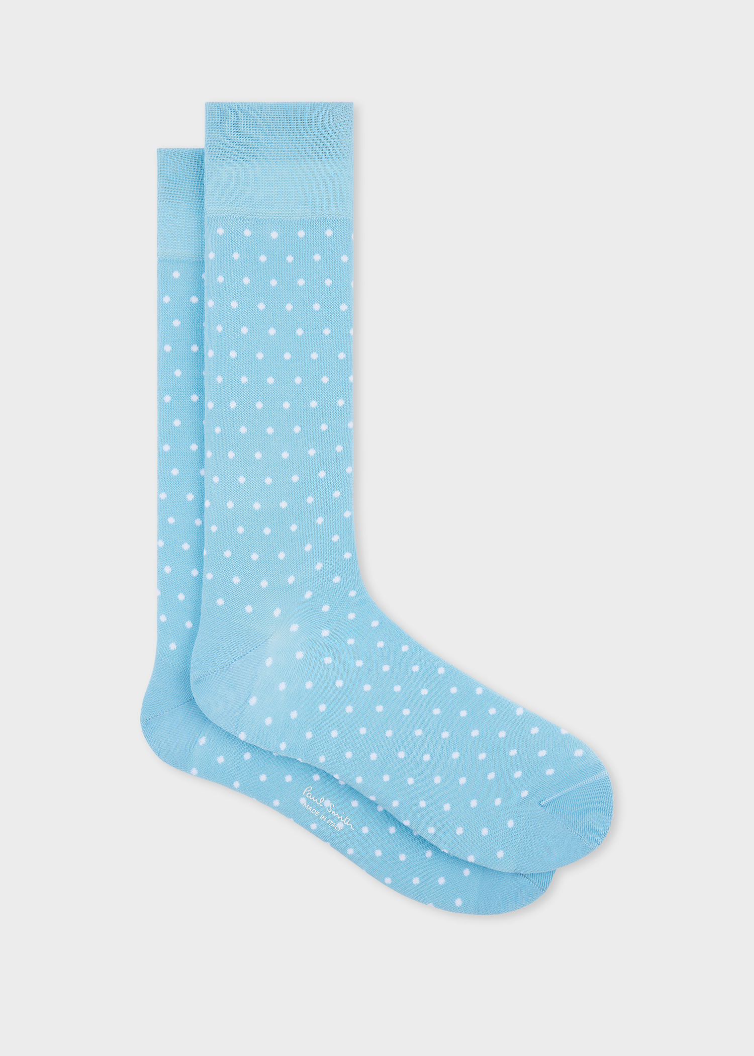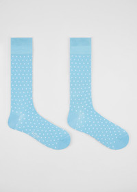 Made in Italy from a soft cotton-blend, these pale blue socks feature a polka dot pattern throughout. These socks are ideal for formal styling. Made in Italy 80% Cotton, 18% Polyamide, 2% Elastane Machine Washable Product Code: M1A-800MO-P457-42