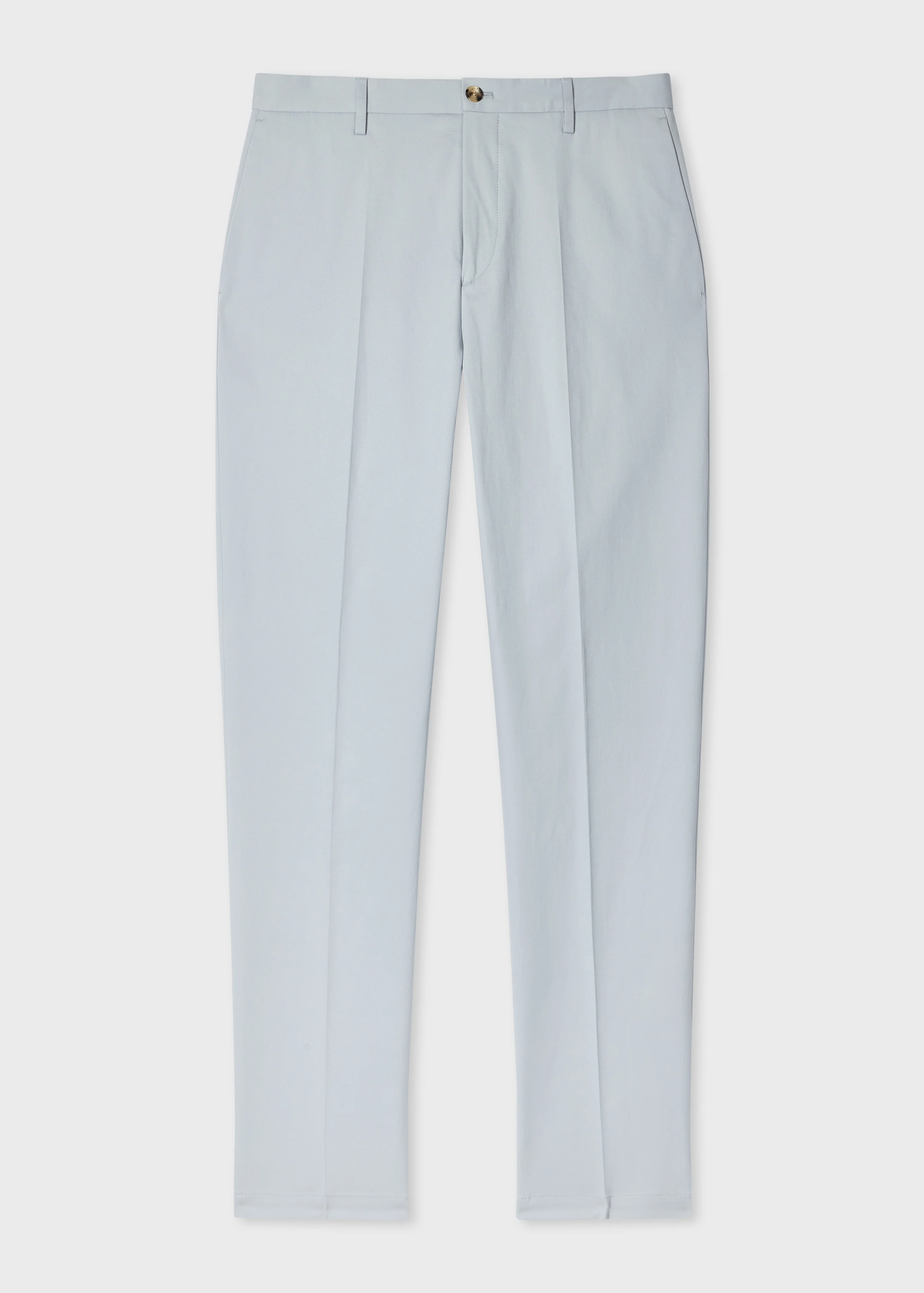Made in Portugal from a fine organically grown cotton twill with stretch, these pale blue trousers feature a straight-fit shape for everyday comfort. Complete with a zip fly and button waist closure. The Fit - Straight-Fit Low rise, fits close through the hip and wider through the calf. Product Code: M1R-055Z-V01934-40