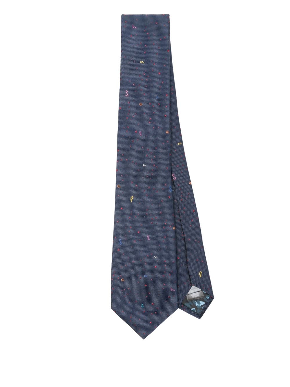 patterned-jacquard tie Highlights - Midnight blue - Rear keeper loop - Embroidered motif - Pointed tip Made in Italy Composition Silk 100%