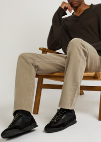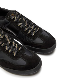 Info & Care PS Paul Smith nylon sneakers Metallic debossed logo at tongue and side, leather and suede side panels, padded ankle, designer-stamped heel with grosgrain trim, logo-embossed rubber midsole with sculpted details, rubber sole, round toe Lace-up front Size & Fit Only available in full sizes, go up to the nearest whole size if you take a half size