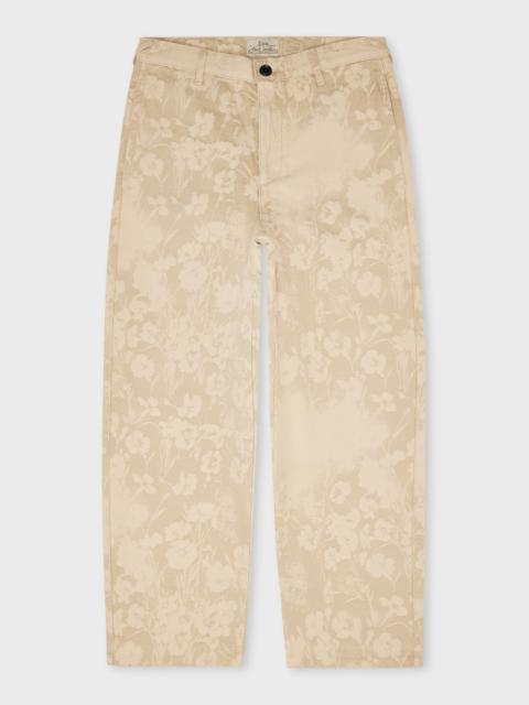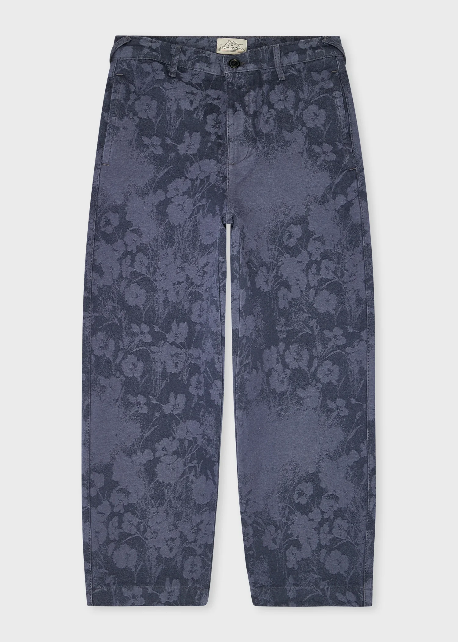 Made from 100% cotton, this addition to the Paul Smith + Lee® line combines good tailoring with an artistic spirit. The jacquard trousers sophisticated stitching and welt pockets give it a traditional feel, while the unique pattern of poppies in-bloom offers a nod to Paul Smith's 'classic with a twist' inspiration. Pair them with the collarless chore coat or wear them as a statement piece all on their own. [b]Paul Smith + Lee®[/b] We enlisted six friends of Paul Smith – two musicians, a photographer, a dancer, a painter, and a lawyer – to demonstrate the collaboration’s easy-going appeal. [b][url="discover/collaborations/lee"]Discover More[/url][/b] 100% Cotton Machine washable [b]Please note for legal reasons this product cannot be shipped to India. Any orders processed will be cancelled and refunded.[/b] The Size Model wears a size 32 Model measures: Height 6’1’’ / 186cm | Chest 37 ½ ’’ / 95cm | Waist 30’’ / 76.5cm The Fit Fit: Loose Rise: Mid Leg: Tapered Product Code: M1R-TAPER-PJACFL-46