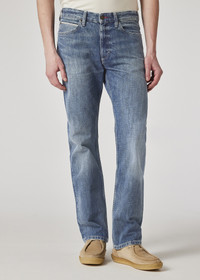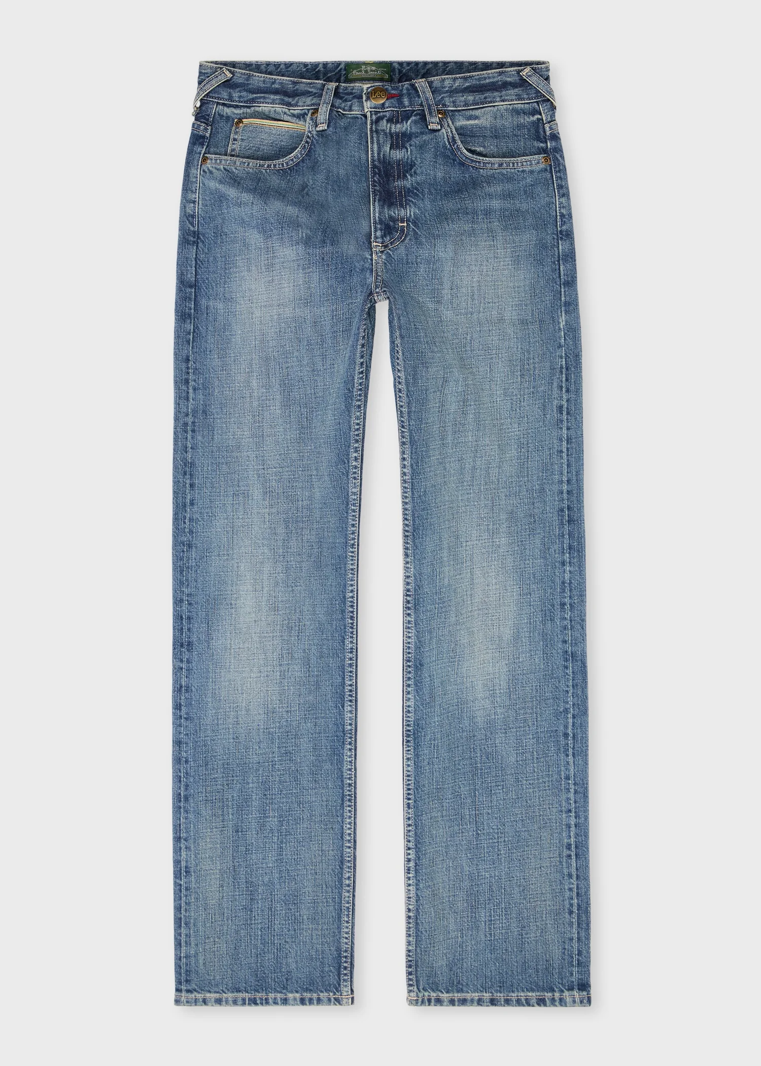 Revived in Italian selvedge denim, this signature piece from Paul Smith + Lee® puts a modern spin on the famous Rider jean. Anchored in classic Rider details like embroidered spade back pockets and x-bar tacks, it features a selvedge watch pocket edge, angled belt loops, floral printed inner pockets, and an exclusive Paul Smith + Lee leather waistband patch. Cuff the hems to reveal a vibrant multi-color selvedge ID inspired by Paul Smith’s “Signature Stripe”. Pair with the Paul Smith + Lee Storm Rider jacket for an authentic silhouette brimming with modern energy. [b]Paul Smith + Lee®[/b] We enlisted six friends of Paul Smith – two musicians, a photographer, a dancer, a painter, and a lawyer – to demonstrate the collaboration’s easy-going appeal. [b][url="discover/collaborations/lee"]Discover More[/url][/b] 100% Cotton Machine washable [b]Please note for legal reasons this product cannot be shipped to India. Any orders processed will be cancelled and refunded.[/b] The Size Model wears a size 32 Model measures: Height 6’1’’ / 186cm | Chest 37 ½ ’’ / 95cm | Waist 30’’ / 76.5cm The Fit Fit: Slim Rise: Mid Leg: Straight Product Code: M1R-JEAN-PSELVW-MD