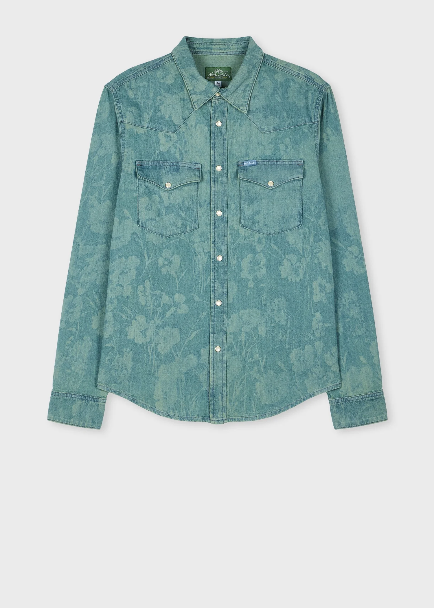 Made from 100% Japanese cotton from Kaihara Mill, this western shirt from the Paul Smith + Lee® collection is focused on crafting a durable piece made to last. It is inspired by a century of western design, from the dual front pockets to the cowboy-style western yokes and pearled snaps. Laser printed with a faded poppy design, this bold button down is a testament to the art of crafting good denim. [b]Paul Smith + Lee®[/b] We enlisted six friends of Paul Smith – two musicians, a photographer, a dancer, a painter, and a lawyer – to demonstrate the collaboration’s easy-going appeal. [b][url="discover/collaborations/lee"]Discover More[/url][/b] 100% Cotton Machine washable [b]Please note for legal reasons this product cannot be shipped to India. Any orders processed will be cancelled and refunded.[/b] The Size Model wears a size M Model measures: Height 6’1’’ / 186cm | Chest 37 ½ ’’ / 95cm | Waist 30’’ / 76.5cm Product Code: M1R-WEST-PDENSH-34