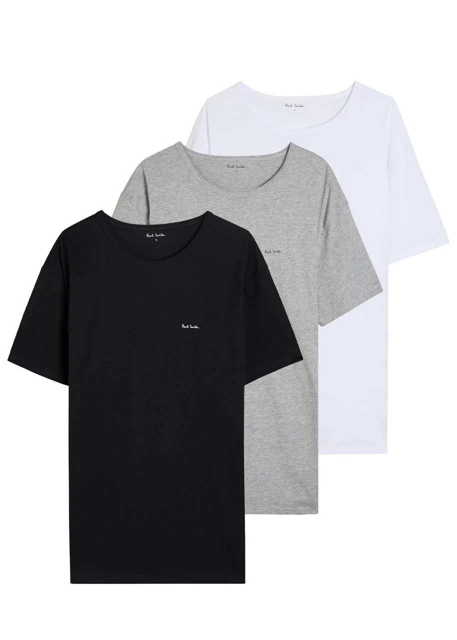 Info & Care Paul Smith cotton T-shirts Set of three Crew-neck,;logo print at chest 100% organic cotton Machine wash; Size & Fit Length shoulder to hem: 28 inches/ 71.5cm Midweight; Regular fit; Model is 6'3"/ 191cm, chest size 38 inches and wears a size medium