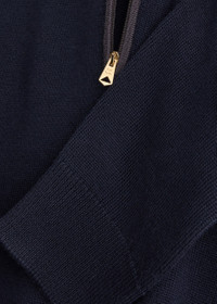 Info & Care Paul Smith wool jumper Zip-fastening high neck, contrasting trim at shoulders, ribbed trims Slips on 100% merino wool Hand wash Size & Fit Length shoulder to hem: 28 inches/ 71cm Midweight Regular fit Model is 6'1"/ 185cm, chest size 38 inches and wears a size medium