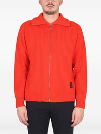 zipped-ribbed knitwear Highlights - Orange - Ribbed knit - Zip fastening - Square logo patch Made in Italy Composition Wool 100% Washing instructions Read Manufacturer Guidelines