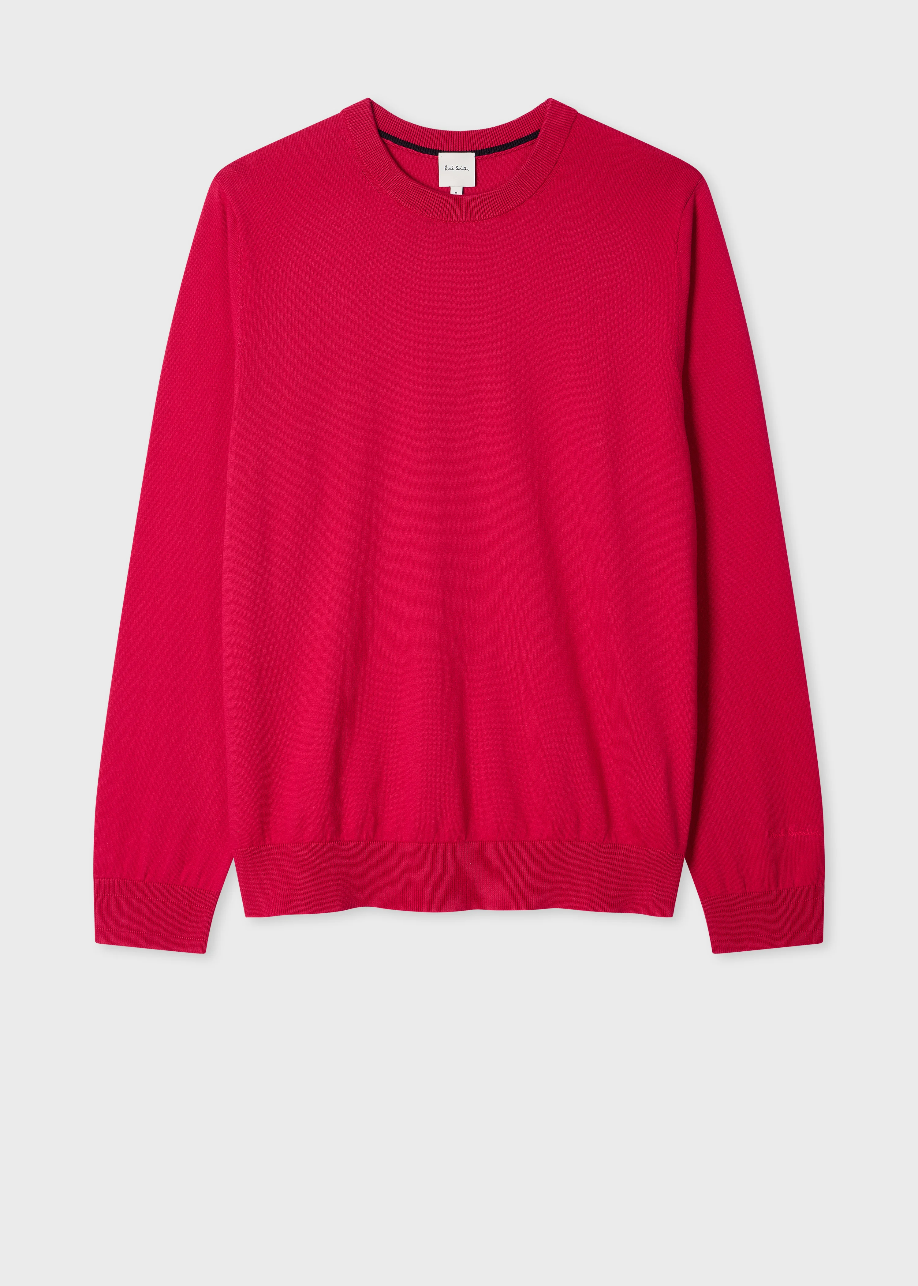Made from 100% organic cotton for a soft and lightweight finish, this vibrant pink crew neck sweater features a knitted construction. Complete with a tonal embroidered logo on the sleeve cuff and a contrast stripe on the back collar - for a signature twist. The Fit - Regular-Fit Product Code: M1R-776Z-V03022-22