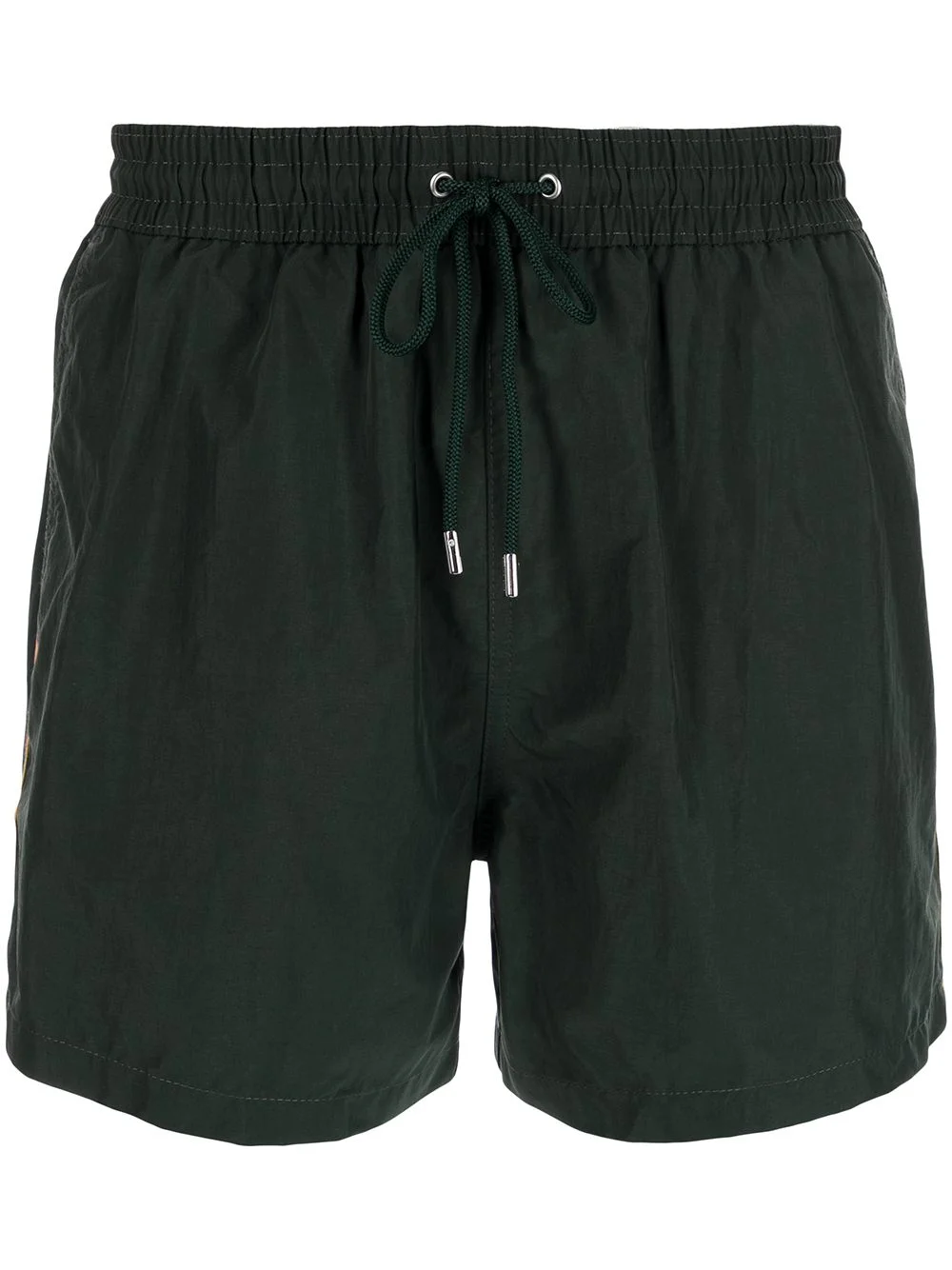 piped swim shorts Paul Smith is known for its classic suits in a bright colour palette. Translating the house's lively hues into swimwear, these swim shorts pop with their bright multicoloured trim. Highlights - Dark green - Recycled polyamide - Piped-trim detailing - Drawstring fastening - Side pouch pockets - Rear zip-fastening pocket - Be mindful to try on swimwear over your own garments. Imported Composition Recycled Polyamide 100% Washing instructions Machine Wash