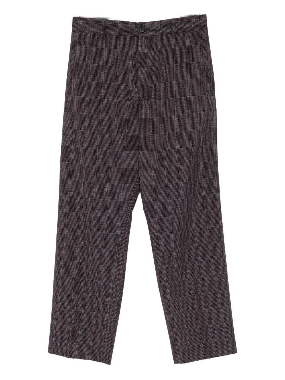 Brown checked pants with front closure, belt loops and elastic waistband. Side and back pockets. product code: M1R690ZT0280753 COMPOSITION Made in Italy 99% wool 1% elastane