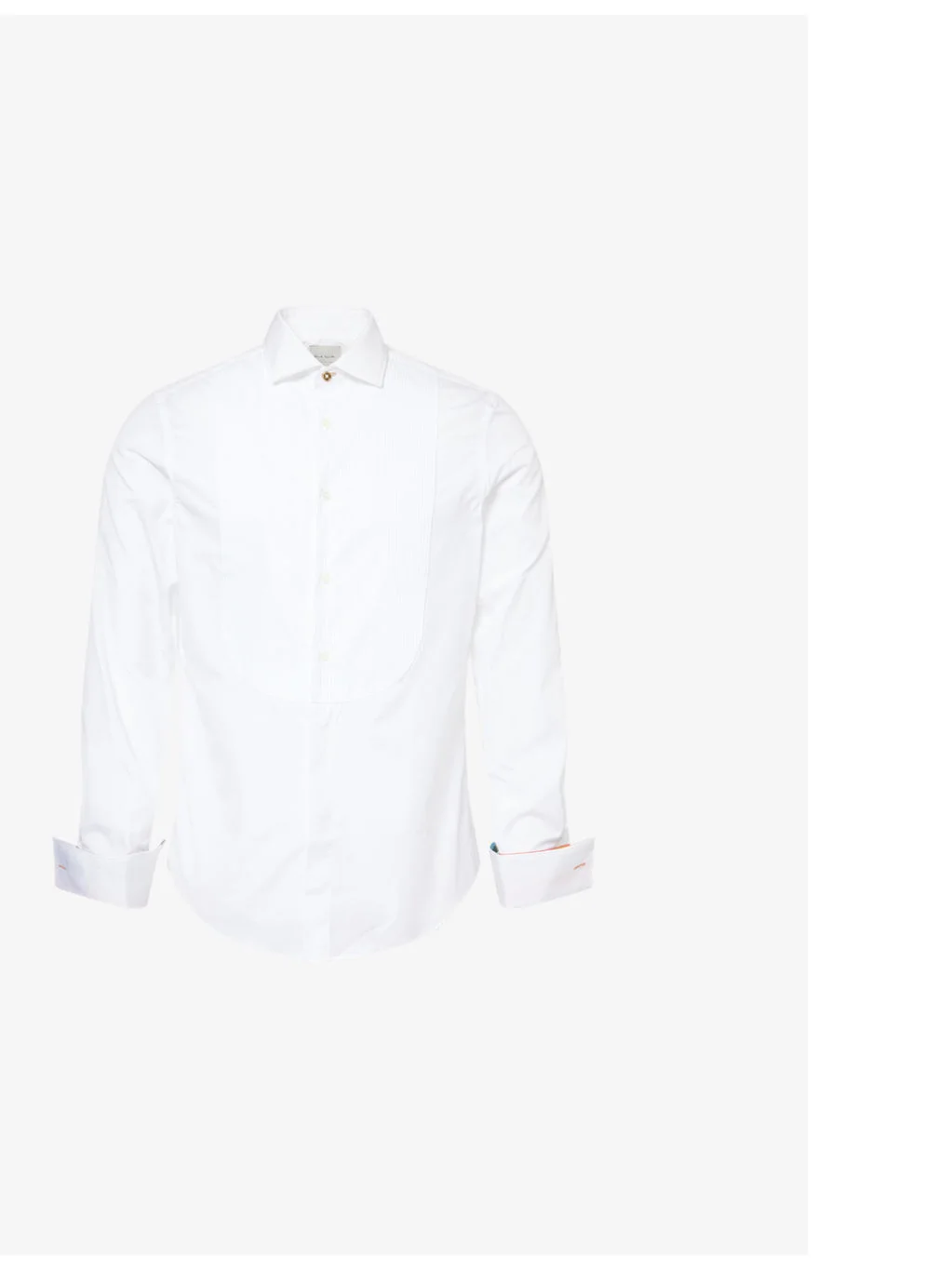 PRODUCT DETAILS - Paul Smith cotton-poplin shirt - 100% cotton - Concealed button fastening at front - Spread collar - Buttoned cuffs - Regular fit, collar, long sleeves, striped cuffs, embossed striped panels at front, straight yoke and darts at back, curved hem - Machine wash cold - Made in Italy - Size collar 15: length 30in / 77cm, chest 40in / 102cm - Model is 6ft 1in / 1.85m and wears a collar size 15 - Lightweight, stretchy