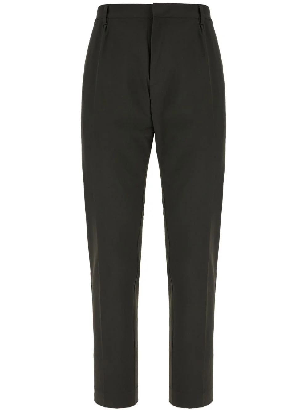 pressed crease tailored trousers Highlights - Dark brown - Pressed crease - Belt loops - Front button and zip fastening - Straight leg - Side slit pocket - Two rear welt pockets Imported Composition Nylon 85%, Elastane 15% Washing instructions Read Manufacturer Guidelines