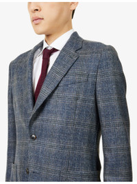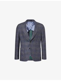 PRODUCT DETAILS - Paul smith wool jacket - 100% wool; lining 100% viscose - Exposed button fastening at front - Notched lapel, long sleeves, button cuffs, two patch pockets at front, one welt pocket at chest, two internal slip pockets, double vent at back curved hem, partially lined, all-over check pattern - Dry clean - Made in Portugal - Size UK 38: length 32.6in / 76cm, chest 39.3in / 100cm - Model is 6ft 3in/1.91m and wears a size UK 38 - Lightweight, non-stretch Ref: R04484565