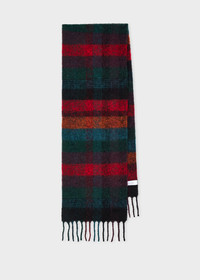 Made from 100% soft merino wool, this red scarf features a check pattern throughout. Complete with frayed edges and a signature logo patch, this scarf is ideal for the transitional weather. Product Code: M1A-150K-T808-25
