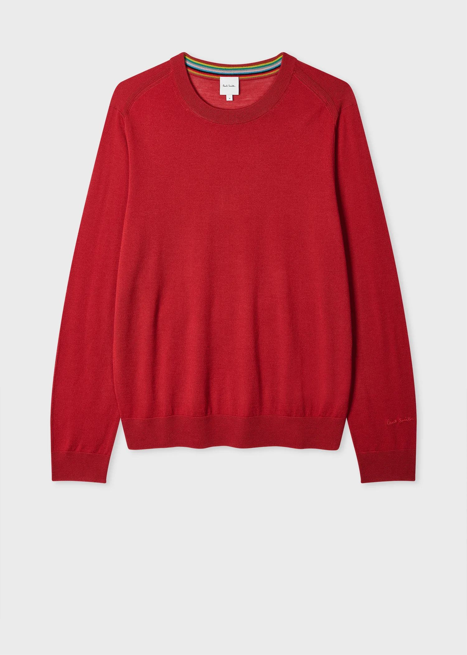 Made from a lightweight and breathable Merino wool with a soft handle finish, this red crew neck sweater features our classic 'Signature Stripe' internally on the collar. Finished with tonal ribbed shoulder seams and a tonal signature logo embroidered on the cuff. The Fit - Classic-Fit Product Code: M1R-238Z-P02093-17