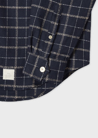 Regular-Fit Navy Cotton Crepe Check Overshirt