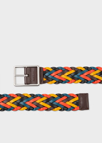 Made in Spain, this men's reversible plaited leather belt features a vibrant 'Artist Stripe' side and a plain brown reverse. 100% Leather with 100% Zamac Buckle Made in Spain Product Code: M1A-4916-AMUREV-66
