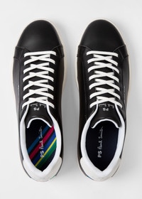 Made from premium leather uppers, these black 'Rex' sneakers feature a classic design with 'Sports Stripe' tape detail at the heel. Complete with white rubber cupsoles with side-wall stitching, these sneakers are finished with embossed PS logo on the side. 100% Leather Uppers 100% Rubber Soles Product Code: M2S-REX56-JLEA-79
