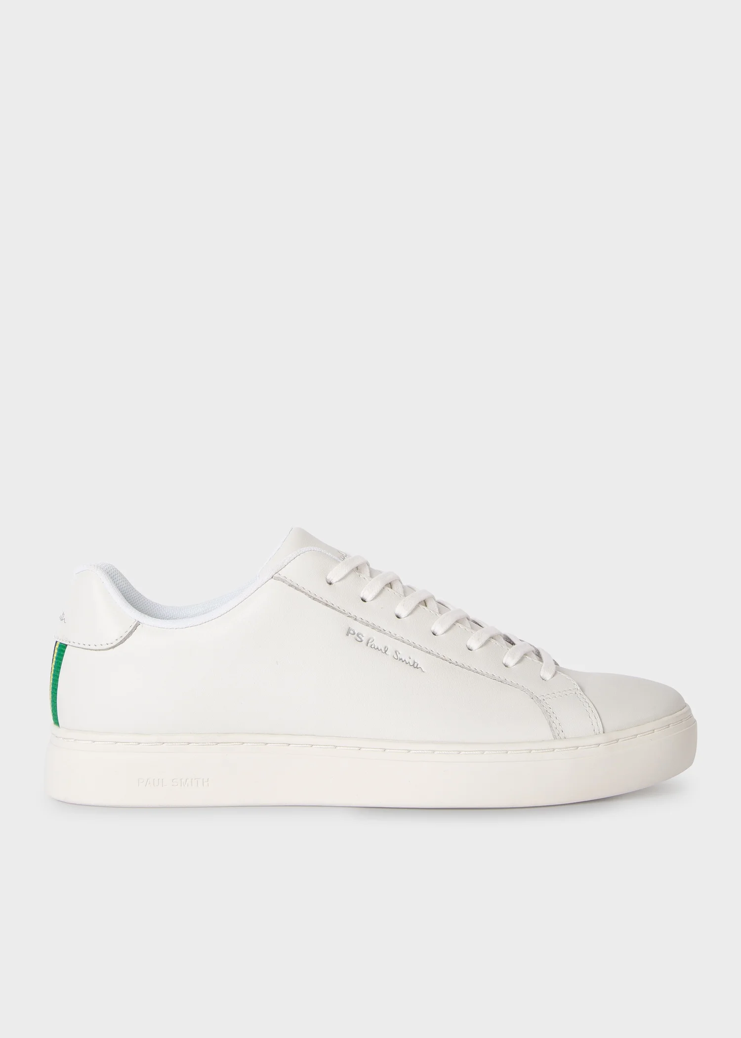 Made from premium leather uppers, these white 'Rex' sneakers feature a classic design with 'Sports Stripe' tape detail at the heel. Complete with tonal rubber cupsoles with side-wall stitching, these sneakers are finished with embossed PS logo on the side. 100% Leather Uppers 100% Rubber Soles Product Code: M2S-REX57-JLEA-01