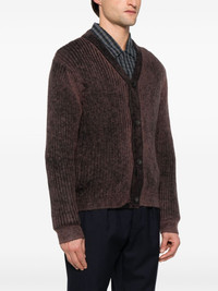 ribbed cardigan Highlights - Brown - Ribbed knit - Acid wash - Brushed effect - Front button fastening - V-neck - Long sleeves - Straight hem Imported Composition Nylon 40%, Wool 30%, Mohair 30% SIZE & FIT Model measurements Height 6 ft 2 in(1.87 m) Bust/Chest 37.79 in(96 cm) Hips 37.79 in(96 cm) Waist 30.31 in(77 cm) FittingInformation Designed for a regular fit, offering a comfortable loose fit throughout the body The ribbed hem offers a close, comfortable fit Made with a lightweight knit, this piece offers some stretch