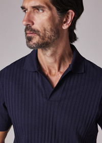 Navy Ribbed Cotton Open-Collar Polo Shirt