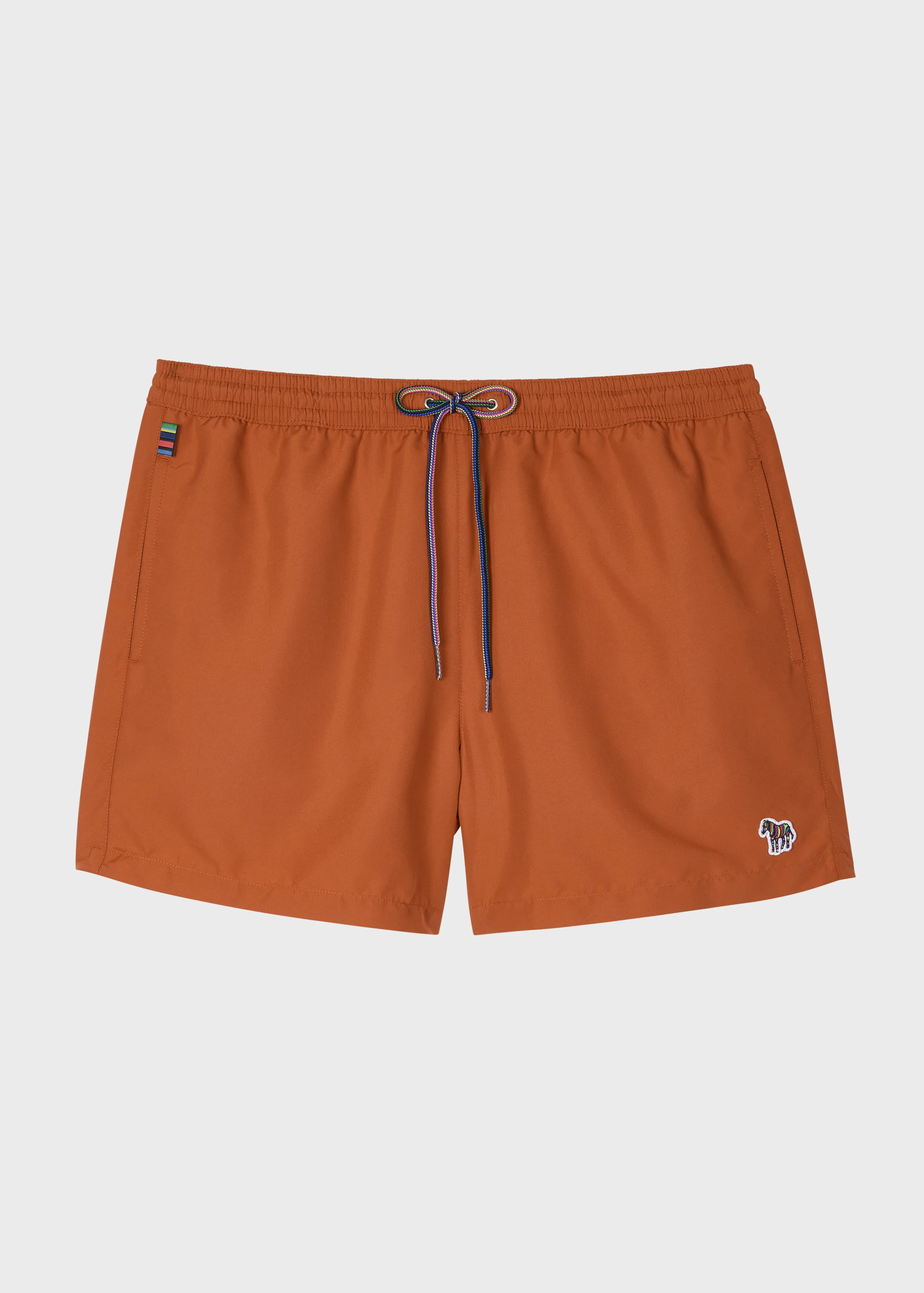Ideal for your next beach getaway, these rust orange swim shorts are made from 100% recycled polyester for a fast-drying finish. Complete with a 'Sports Stripe' drawstring waistband for the perfect fit, these shorts are finished with our classic zebra logo. The Size The length of these swim shorts including the waistband are as follows: - S - 35cm - M - 36cm - L - 37cm - XL - 38cm The Fit - Classic-Fit Product Code: M1A-200A-AU285-19