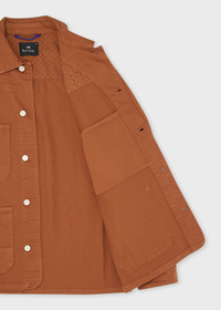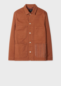 Rust Stretch Cotton-Twill Embroidered Stripe Chore Jacket