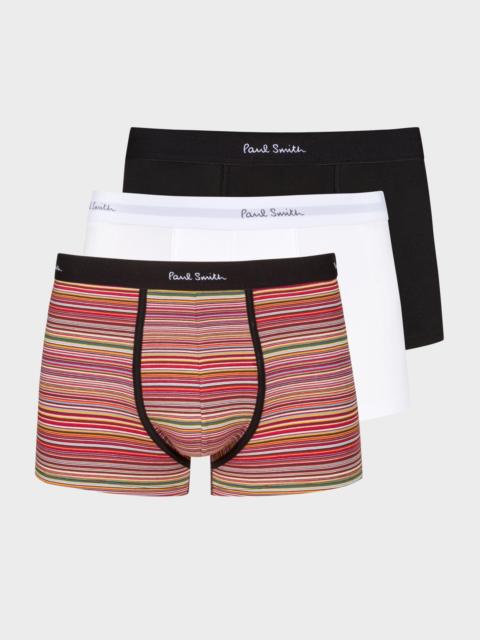 Crafted from a soft organic cotton-blend, this pack of three boxer briefs features a classic 'Signature Stripe' pair, and a plain black and white pair. Complete with our Paul Smith signature logo waistband. Presented in an 'Artist Stripe' box. 95% Cotton, 5% Elastane Machine washable Product Code: M1A-914-M3PKK-1A